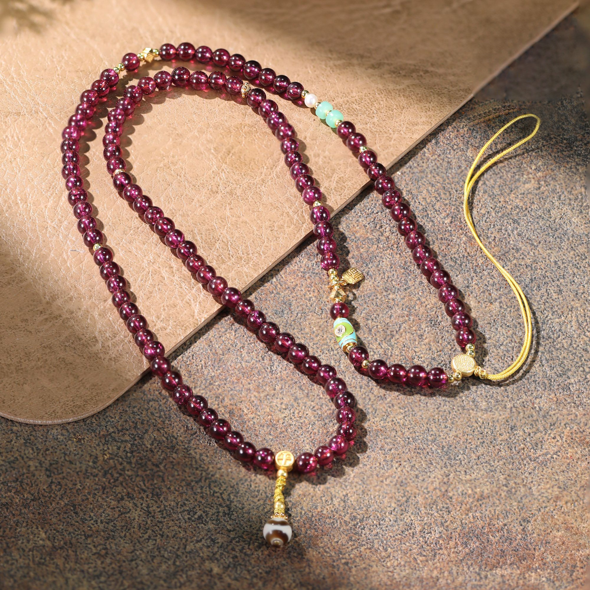 Passionate Commitment-Garnet January Birthstone Paired with a Dzi bead Guardian Necklace