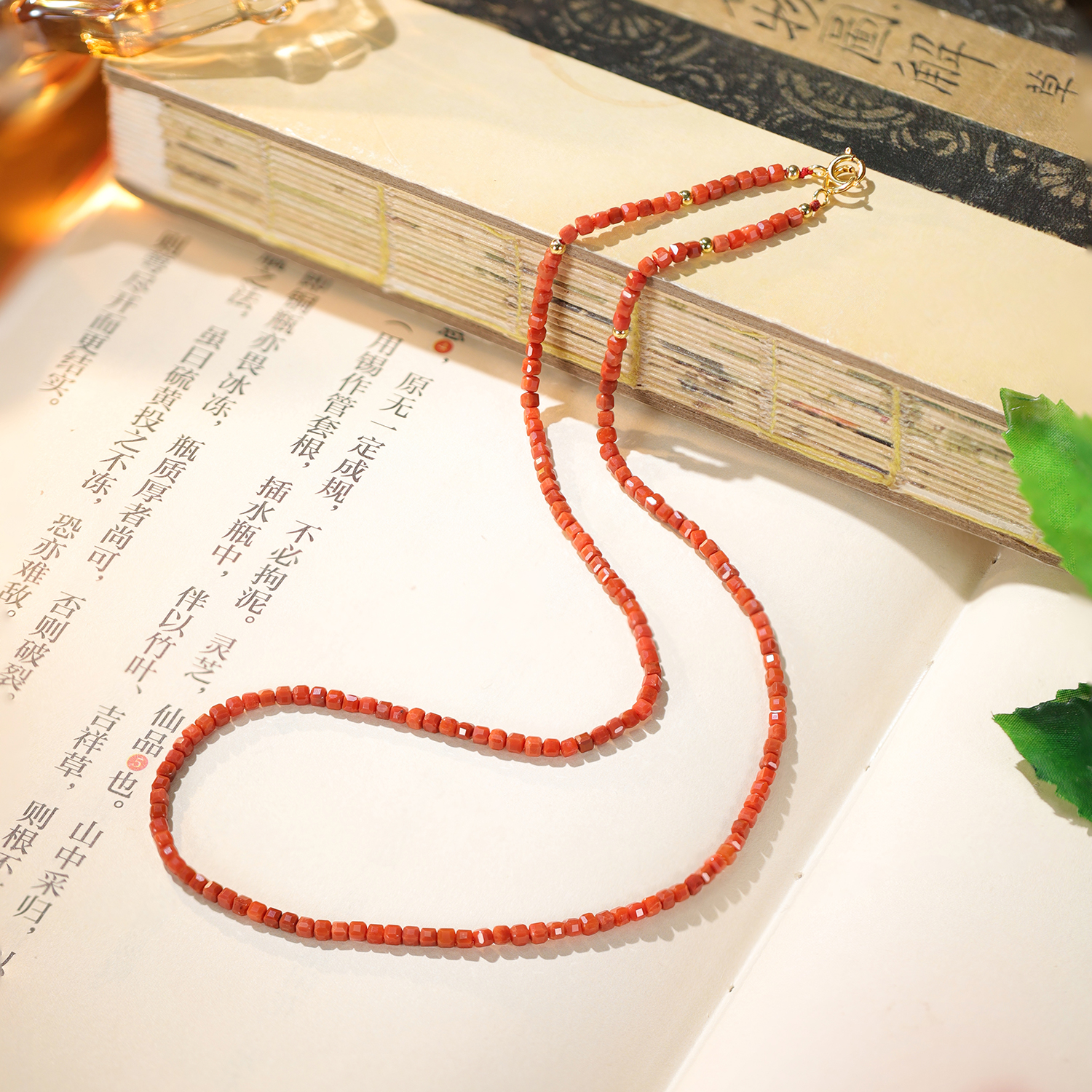 Passionate Purity – South Red Agate Square Beads Fire Element Necklace