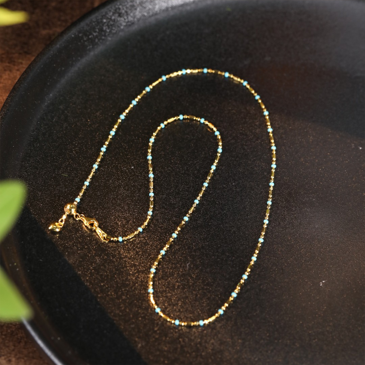 Radiant Magnetism – Turquoise Flashing Silver Metal-Wood Balance Chain Necklace