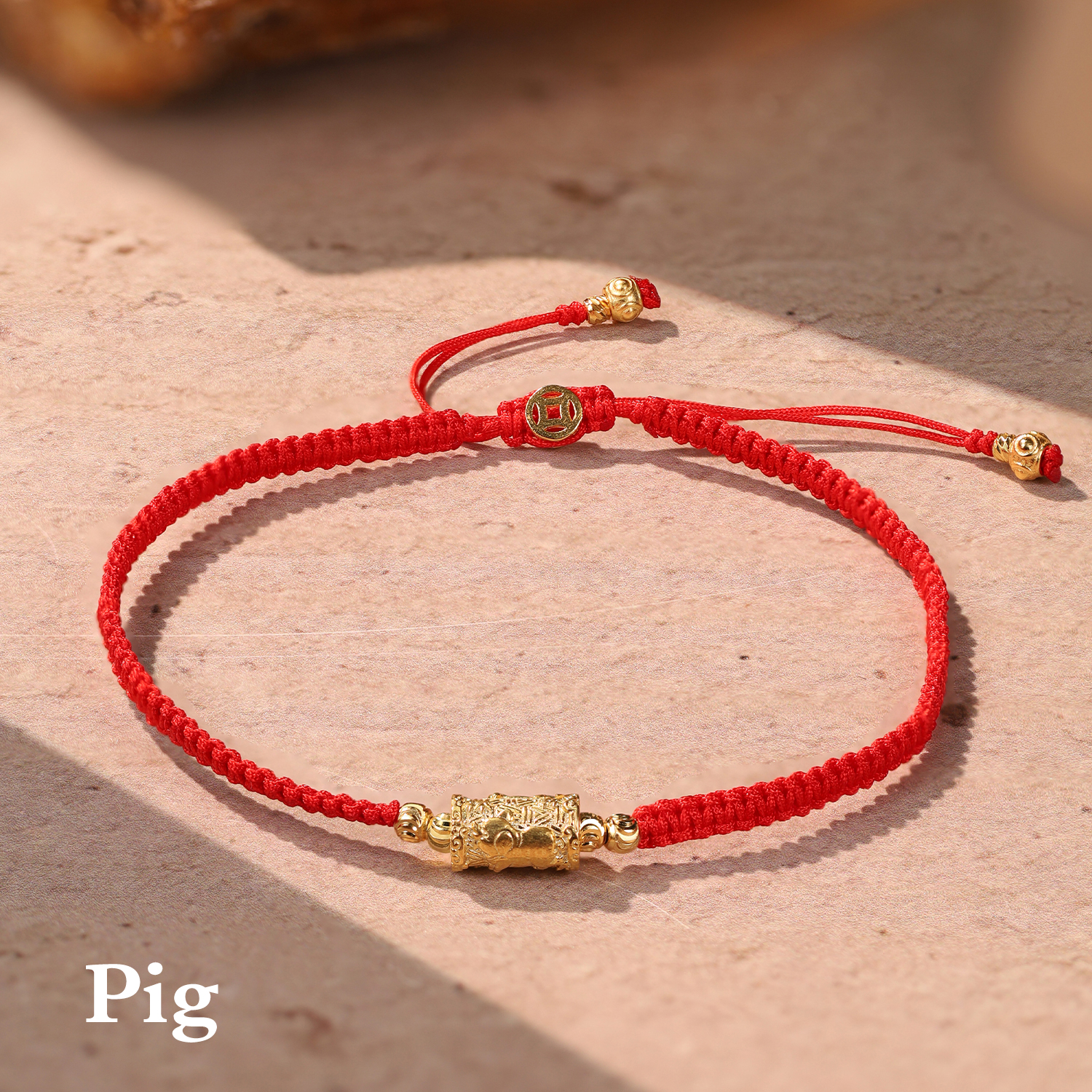 Not just jewelry — a symbol of generous abundance, heartfelt contentment, and innocent wisdom. The Pig closes the Zodiac cycle as a sign of honest wealth, sensual enjoyment, and a generous, peaceful nature. It symbolizes the prosperity that comes from integrity, the joy of life’s pleasures, and the wisdom of a contented heart. This symbol attracts sincere fortune and comforts the spirit. The red string ensures this abundant energy flows to you with ease and purity.