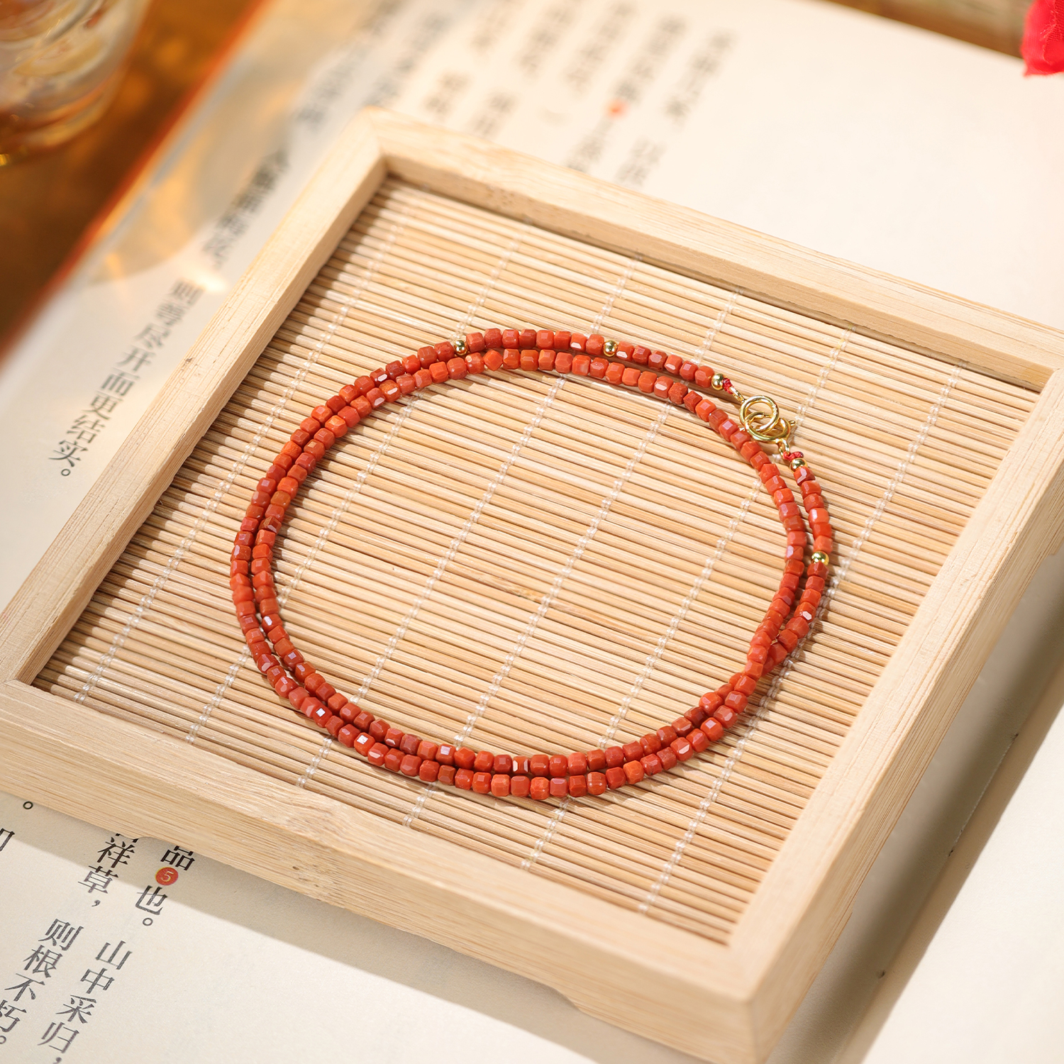 Passionate Purity – South Red Agate Square Beads Fire Element Necklace
