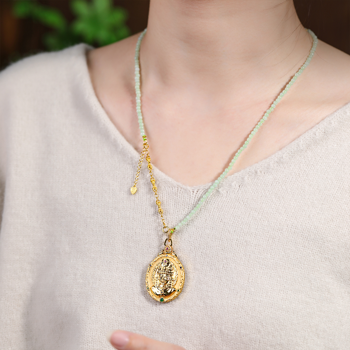 Elegant Roots – Jadeite Paired with “Peace Lock” Wood Element Necklace